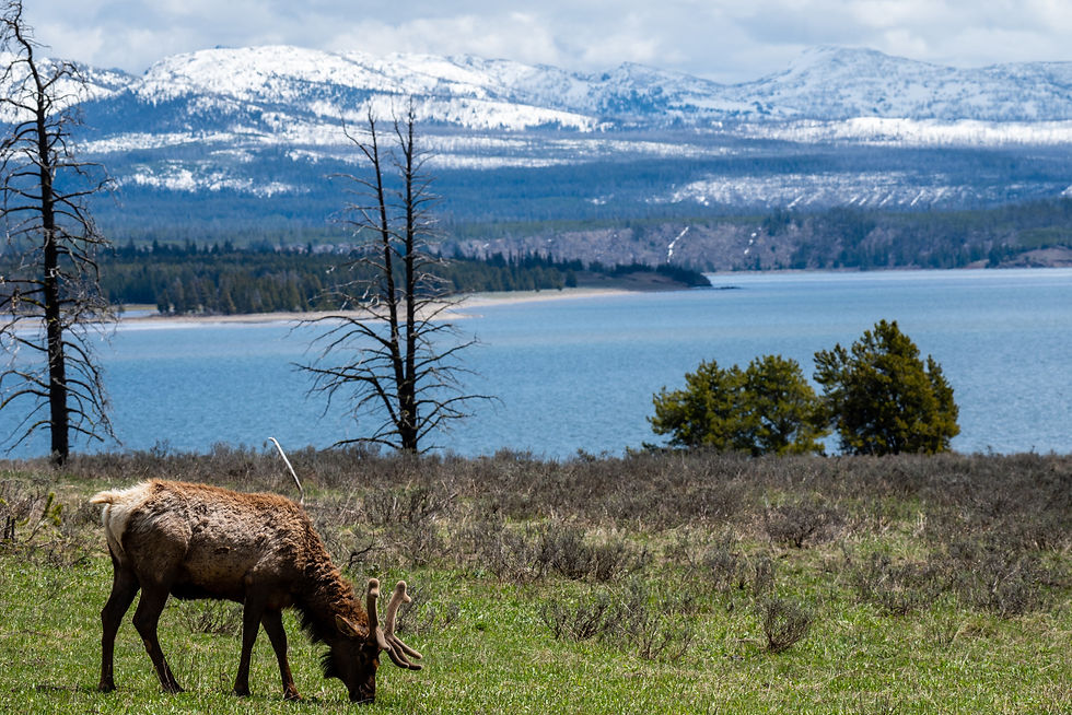 Elk grazing at Yellowstone lake